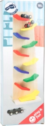 Dette kvalitets-kaskadetårn i træ giver børn en endeløs portion actionfyldt leg. Læg blot den lille leddelte bil på toppen og se den køre ned ad de enkelte ramper og skabe den karakteristiske “klap klap”. Legen stimulerer syn, hørelse samt hånd-øje-koordination.