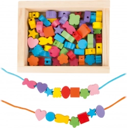 Små skabere kan nyde timer af sjov med dette træperlesæt. Boksen indeholder 81 farverige perler og 2 snore, der giver børn mulighed for at lave forskellige smykker efter deres fantasi.
