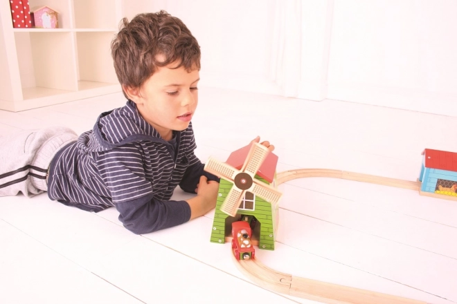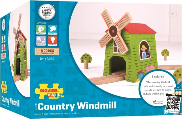 Udvid din træjernbane med en interaktiv vindmølle fra Bigjigs Rail. Børn kan køre toget gennem møllen og dreje de bevægelige vinger, hvilket udvikler fantasi, finmotorik og koordination. Kompatibel med de fleste træjernbaner på markedet, lavet af kvalitetstræ og opfylder europæiske sikkerhedsstandarder. Tog og andet tilbehør medfølger ikke.