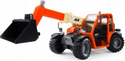 Teleskoparmen løftes med et håndsving på maskinens bagside og kan udskydes op til 40 cm. Frontskovlen er vipbar og let at udskifte med BRUDER-tilbehør (palle, spil, gafler – BR2318). Kabinen af uknuseligt polycarbonat med åbningsbare døre og anhængertræk fuldender den autentiske oplevelse af at betjene byggemaskiner.