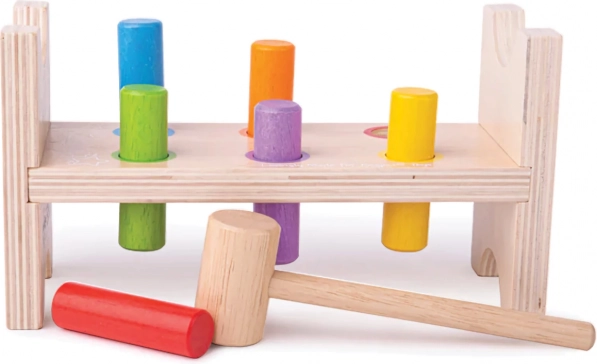 At hamre de farvede tapper i med køllen styrker grebet, præcisionen og hånd-øje-koordinationen – ideelt til de første motoriske udfordringer.