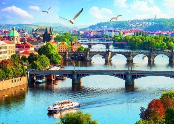 Bring Prags charme hjem med ikoniske broer og historisk arkitektur. Perfekt til elskere af bylandskaber.