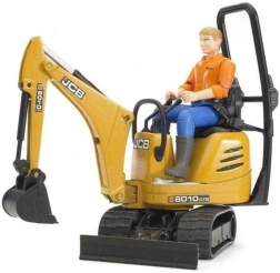 Traileren med foldbare ramper gør det nemt at transportere den gule minigraver, som er udstyret med drejelig kabine og funktionel arm med skovl. Minigraveren er fuldt kompatibel med andre Bworld-figurer, hvilket gør den til det perfekte supplement til enhver børns byggeplads.