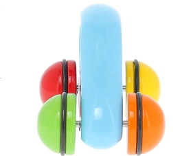 Farvede hjul med gummiring dæmper støj, beskytter gulvet og sikrer jævn bevægelse – ideelt til lejlighed og børneværelse.