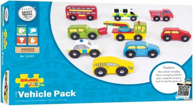 Dette træsæt med biler fra Bigjigs Rail er designet til at stimulere børns fantasi og finmotorik. Kombinationen af klare farver og den solide trækonstruktion tiltaler hvert barn og gør legen både sjov og lærerig.