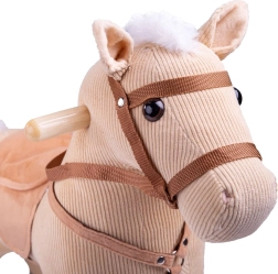 Den beige gyngehest er designet til at give børn en sikker og behagelig tur. Den bløde saddel og trense i fin kordfløjl indbyder til berøring, og legen udvikler ikke kun fantasien, men også motoriske færdigheder. Den robuste træbase sikrer stabil gyngning uden uønsket vuggen.