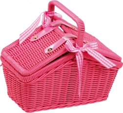 Denne pink picnickurv er den ideelle ledsager til udflugter med dukker og til børns teselskaber. Moderne design i 70’er-stil kombineret med metalservice med blomstermønster vil glæde små værter og værtinder. Kurven af kunstflet er rummelig nok til hele servicesættet og små lækkerier.