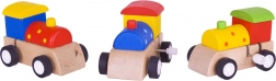 Lokomotiverne fås i tre markante farvevarianter, som stimulerer børns fantasi og understøtter deres farveopfattelse.