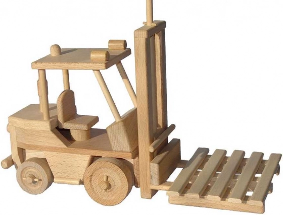 Denne realistiske træmodel af en gaffeltruck er fremstillet af omhyggeligt forarbejdet bøgetræ. Overfladen er kun vokset og poleret, så træets naturlige åretegning fremhæves, og legetøjet forbliver uden farvestoffer og kemiske behandlinger. Takket være afrundede kanter og robust udførelse er den velegnet til daglig leg både inde og ude.