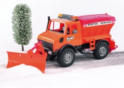 Mercedes-Benz Unimog fra BRUDER er en robust saltspreder med plov designet til vinterarbejde. Takket være den præcise udførelse får børnene en realistisk legeoplevelse – fra rydning af sne til saltning af kørebanen. Den forreste leddelte aksel sikrer fremragende manøvredygtighed, og ploven er ikke kun drejelig, men også let at afmontere.