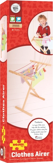 Leder du efter det perfekte tilbehør til børneværelset? Træ tørrestativ til tøj Bigjigs Toys er designet til at give børn timers sjov leg, mens de udvikler finmotorikken. Når små børn leger tøjvask som deres forældre, har de det ikke kun sjovt, men lærer også om dagligdags aktiviteter.