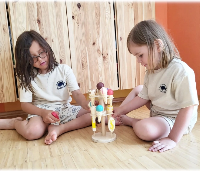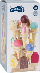 Small Foot isbod i træ opfordrer børn til kreativ leg og hjælper dem samtidig med at udvikle kognitive og kommunikative færdigheder. Dette farverige sæt har tre etager med ti is og fem ispinde, som kan placeres i runde huller eller sættes i standerens sokkel.