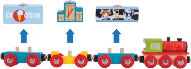 Det træbaserede godstog fra Bigjigs Rail leverer basale forsyninger og særlige lækkerier og indeholder desuden 3 skinner for nem udvidelse af banen. Kompatibelt med alle almindelige trætogbaner, fremstillet af kvalitetsnaturmaterialer og opfylder europæiske sikkerhedsstandarder. Understøtter fantasi, fingerfærdighed og koordination for børn fra 3 år.