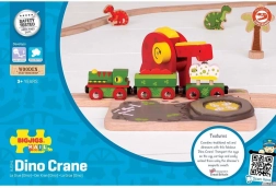 Bigjigs Rails dinosaurkran bringer et strejf af eventyr til din trætogbane. Børn kan med den bevægelige dinosaurhals og magneten flytte dinosaurægget til den medfølgende vogn og træne hånd-øje-koordination. De klare farver og den robuste trækonstruktion indbyder til fantasifuld leg, der holder.