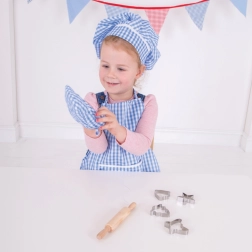 Mød det blå kokkesæt til børn, et fantastisk tilbehør til de små kokke, der elsker assisteret madlavning eller bagning. I dette sæt finder du alt nødvendigt: