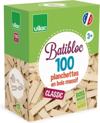 Klassisk træbyggesæt af naturligt massivt træ med 100 klodser, der udvikler børns fantasi og finmotorik. Byggevejledninger er inkluderet. Høj kvalitet, fremstillet i Frankrig, ideelt fra 3 år.