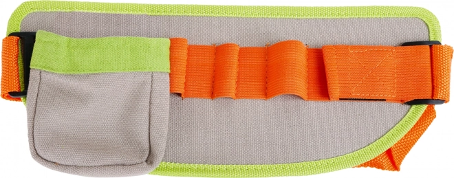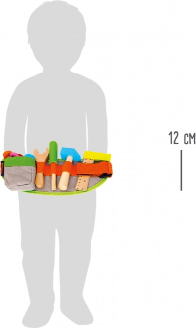 Værktøjsbæltet indeholder farverige træredskaber, som understøtter udviklingen af finmotorik og kreativ leg.