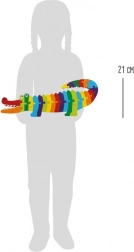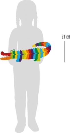 Legende bogstavlæring har aldrig været nemmere. Trækrokodillen med bogstaverne A–Z forener læring og sjov. Hver del er farverig, ligger godt i barnets hånd og støtter udviklingen af finmotorik, koncentration og logisk tænkning.