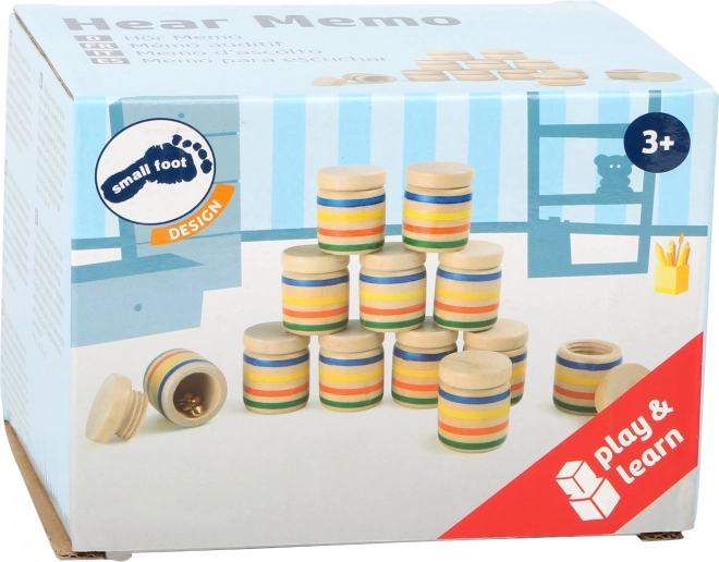 Sættet indeholder 12 trædåser med skruelåg, som gør denne lydleg til en fremragende hukommelsestræner. Hver dåse har en matchende makker med samme indhold, og din opgave er at finde parret ud fra lyden. Du kan lægge forskellige materialer i – fra perler til små klokker – og undersøge, om du kan høre forskellen.