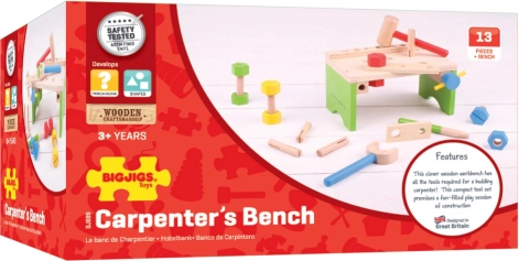 Dette træværkstedssæt fra Bigjigs Toys indeholder alle nødvendige værktøjer til små byggere. Børn vil være begejstrede for skruenøglen, hammeren og de mange skruer, møtrikker og slagklodser, der er en del af pakken.