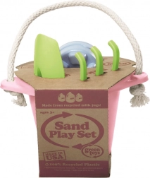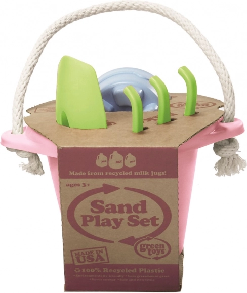 Green Toys tilbyder ansvarligt legetøj af 100% genbrugsplast, som ikke indeholder PVC, bisphenol eller ftalater. Dette pink sandsæt indeholder: