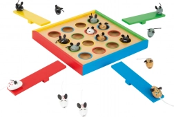 Lille og sjovt træspil, der kombinerer spænding, færdighed og strategi. Velegnet til børn fra 4 år. Farverige mus og fire gynger venter på dit præcise skud.