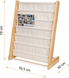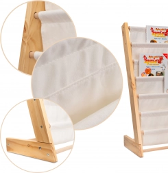Elegant og praktisk bogreol i træ bliver nemt en del af ethvert børneværelse. Den tilbyder op til 6 stofhylder, der giver rigelig plads til bøger, malebøger og andre nødvendigheder til dit barn. Reolens højde er 76,5 cm, hvilket gør det muligt for barnet at nå alle hylder uden problemer.