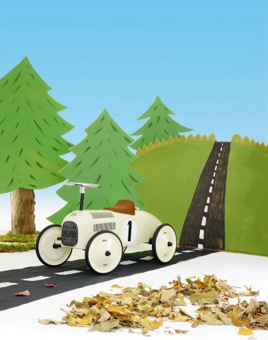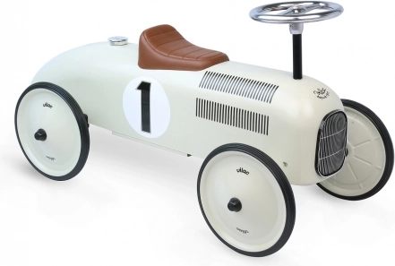 Stilfuld børne-løbecykel i looket af en racerbil imponerer med sin retrocharme og kvalitetsfulde metaludførelse. Tilbyder støjsvag kørsel takket være gummibelagte hjul, nem styring med rat og solid konstruktion med en bæreevne på 20 kg – ideel til små racerkørere fra 1,5 år.