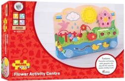 Den træ motoriktavle BIGJIGS BABY Blomster bringer en farverig verden af aktiviteter, der understøtter børns naturlige udvikling fra 6 måneder. Børn kan skubbe ællingerne langs en bane, dreje i labyrinten og hjælpe mariehønen, humlebien og sommerfuglen med at bevæge sig op og ned ad perlelabyrinten. Hvert element er designet til at indbyde til udforskning og træne greb samt koordination.