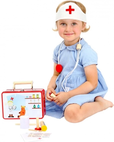Børn vil elske den træ-lægekuffert, som styrker deres kreativitet og sociale færdigheder. Sættet giver en fantastisk mulighed for at lege doktor, hvilket hjælper med at udvikle barnets sproglige og sociale kompetencer.