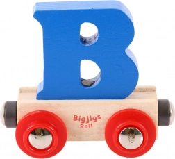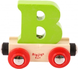 Vognen er lavet af kvalitets træ og metal, har pålidelige magnetiske koblinger og kobles gnidningsfrit til andre vogne og lokomotiver. Leveres i en tilfældig farve (rød, lilla, orange, grøn, gul eller blå). Bemærk: bogstavvogne er ikke konstrueret til at køre gennem banens tunneller.
