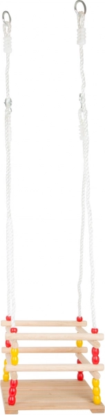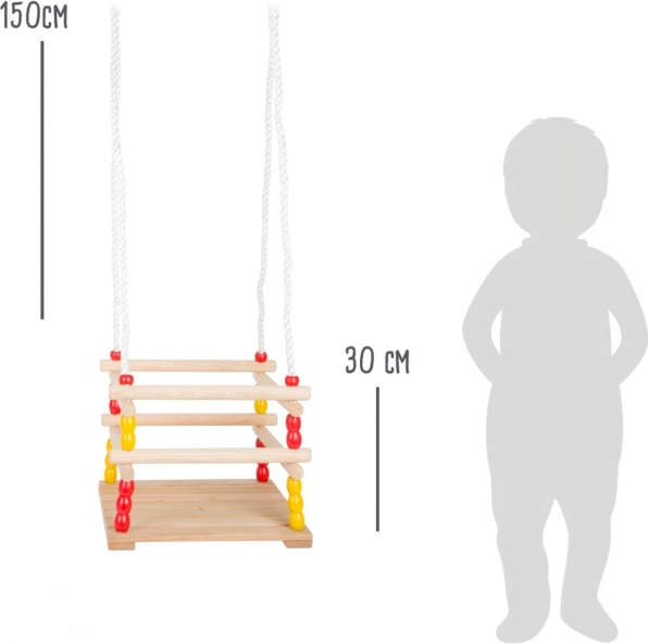 Denne trægynge SMALL FOOT er designet til komfortabel og sikker gyngetur for mindre børn. Den beskyttende indhegning giver støtte ved både siddestilling og greb, de stærke reb med metalgennemføringer muliggør hurtig længdejustering, og de robuste metalringe sikrer nem ophængning. Omhyggeligt bearbejdet massivt træ giver gyngen lang levetid og et naturligt udseende.