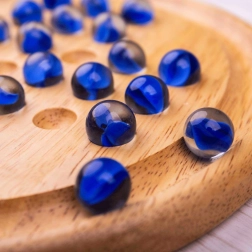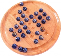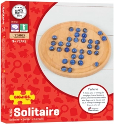 Oplev tidløs underholdning med træsolitæren fra BIGJIGS TOYS. Skinnende blå kugler og en omhyggeligt forarbejdet rund plade skaber et elegant logikspil, der tester både snilde og tålmodighed. Målet er ved at hoppe kuglerne at efterlade kun én kugle på brættet.