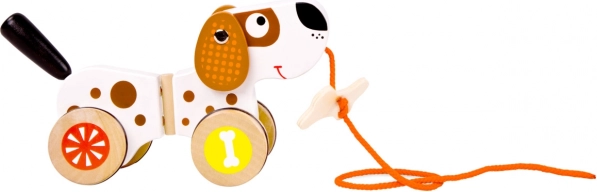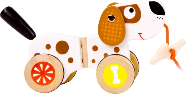 Denne trækhund i træ er designet som den ideelle ledsager for små børn under deres leg og udforskning af verden. Den er fremstillet af træ i høj kvalitet, og det farverige design fanger ethvert barns opmærksomhed.