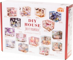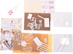 I pakken finder du alt, hvad du behøver: byggedele til værelset, indretnings- og dekorationselementer, lim og en detaljeret vejledning med billeder. Belysningen drives af 2× AAA 1,5 V og 3× LR54 1,5 V (batterier medfølger ikke). Anbefales fra 8 år. Den færdige model måler 17,1 × 13 × 11,6 cm; pakken 25 × 18 × 6 cm.