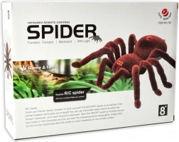 Fjernbetjeningen muliggør kørsel frem, tilbage og drejning til venstre. Edderkoppen bevæger sig ved hjælp af diskrete hjul, og dens lysende øjne forstærker effekten af et ægte rovdyr. Kroppen er dækket af pelslignende materiale, og på bagsiden sidder en sensor til modtagelse af signalet fra fjernbetjeningen.
