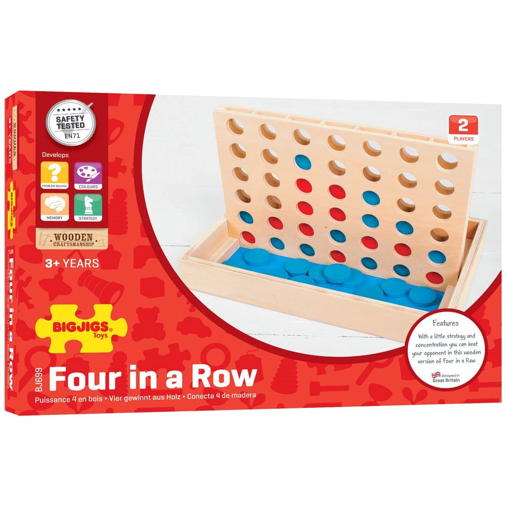 Dette tidløse brætspil byder på hurtige og spændende runder, hvor spillerne skiftes til at slippe jetoner ned i et lodret gitter og forsøger at danne en række på fire – vandret, lodret eller diagonalt. Samtidig gælder det om klogt at blokere modstanderen, hvilket styrker kritisk tænkning og planlægning.