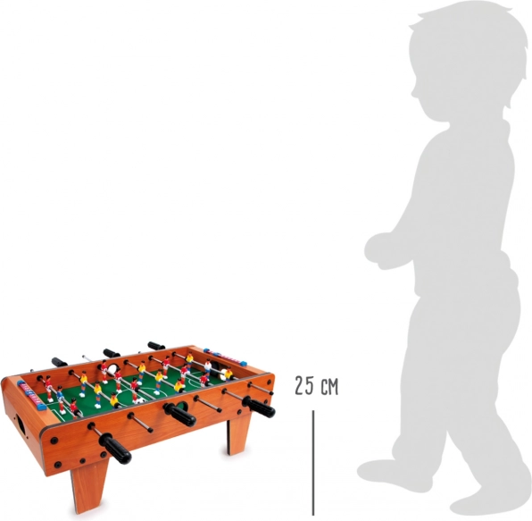Den store bordfodbold fra small foot er et ideelt familiespil, som nemt placeres på ethvert bord. Takket være de kompakte mål og den solide udførelse i lakeret træ, metal og slidstærk plast er den klar til daglige kampe. Den grønne bane med målene 60 × 34 cm giver et flydende spil og nem kontrol over spillerne.
