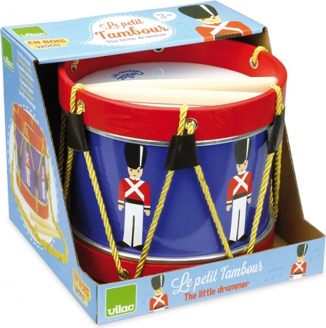 Udvikl musikalsk sans og rytme med denne kvalitetsbearbejdede børnetromme fra VILAC. Farverigt design med soldatermotiv, to træstokke og en gylden flettet rem til komfortabel bæren om halsen vil glæde små musikere. Trækonstruktion, robust udførelse og nem spilbarhed gør denne tromme til et ideelt valg til de første musikalske skridt.