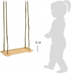 Denne naturgyng e af omhyggeligt bearbejdet massivt træ giver sikker og komfortabel gyngeglæde for både børn og voksne. Takket være metalgennemføringer kan højden nemt tilpasses efter behov, så gyngen kan følge med dine børn. Den naturlige overflade muliggør egen indfarvning og lakering, så du kan tilpasse den til din haves stil.