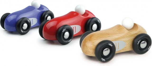 Stilfuld mini racerbil i lakeret træ, der glæder både små og store motorentusiaster. Den har massive gummihjul for en jævn kørsel, solid trækonstruktion og et tidløst rødt design. Perfekt til leg og som dekoration. Fremstillet i Frankrig.