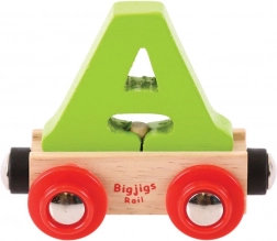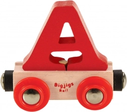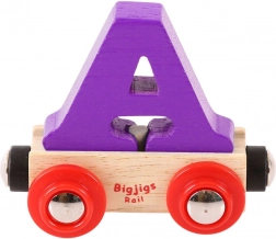Trævognen til togbane med bogstavet A tilbyder børn en sjov og samtidig lærerig oplevelse. Hvert bogstav kan tages af og udskiftes med andre elementer, hvilket gør den velegnet til at skabe personlige navnesæt eller ord.
