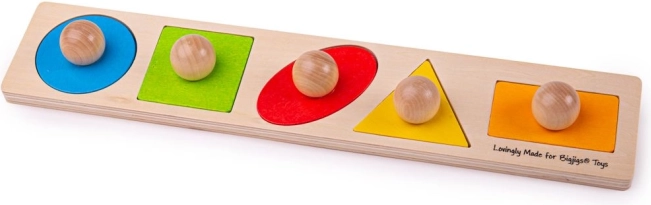 Træindsætning puslespil former Bigjigs Baby er designet til børns sjov og læring. Med farverige former og let grebbare kugler er håndtering og sortering af former nem og behagelig.