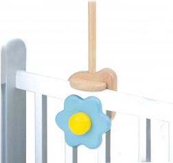 Den elegante træholder til ophængning af babyuro er designet til hurtig montering og sikker fastgørelse på tremmesengens gelænder. Massivt træ sikrer stabilitet og lang holdbarhed, mens det dekorative element med blomst giver sengen et legende udtryk.