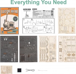 Sættet indeholder 140 dele med lav sværhedsgrad, så det er perfekt til begyndere og større børn. Takket være den overskuelige vejledning samler du guitaren på cirka 1,5 time. Resultatet er en realistisk model af en elektrisk guitar med forstærker, som er en fantastisk gave til musikentusiaster.
