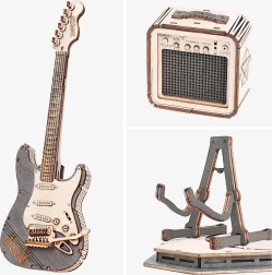 Træ 3D-puslespil elektrisk guitar ROKR