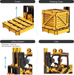 Dette byggesæt inden for materialehåndtering tager dig ind i en verden af kraftfulde maskiner og smarte mekanismer. Træ-3D-puslespillet af en gaffeltruck består af 139 laserkærede dele, som danner en detaljeret model med bevægelige dele. Bygningen er intuitiv og, takket være den medfølgende vejledning, håndterbar selv for begyndere.