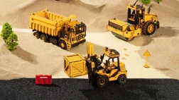 Supplér gaffeltrucken med andre træmodeller af byggemaskiner og skab din egen samling af funktionelle maskiner.