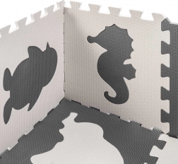 EVA-materialet er elastisk, stødabsorberende og samtidig meget let at vedligeholde – tør blot af med en fugtig klud. Delene passer præcist sammen, så montering og afmontering klares på et øjeblik. Det stilrene design fungerer desuden som et dekorativt element i børneværelset.