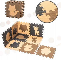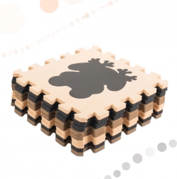 Af puslespilsdelene kan du ikke kun samle en flad måtte, men også bygge klodser eller en lille indhegning – kreativitet uden grænser.